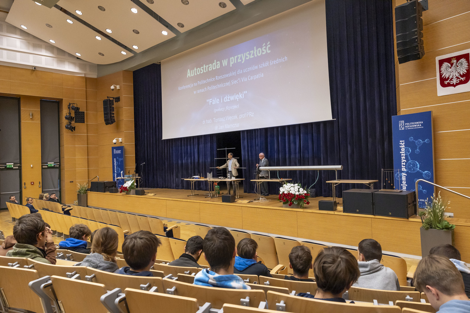 Przedstawiciele podkarpackich szkół średnich: Zespołu Szkół Licealnych w Leżajsku, IV Liceum Ogólnokształcącego w Rzeszowie, Akademickiego Liceum Ogólnokształcącego w Rzeszowie, Zespołu Szkół nr 3 w Rzeszowie, Zespołu Szkół Technicznych w Rzeszowie i Zespołu Szkół Mechanicznych w Rzeszowie, wzięli udział w konferencji „Autostrada w przyszłość”. Wydarzenie odbyło się na Politechnice Rzeszowskiej w ramach Politechnicznej sieci Via Carpatia.