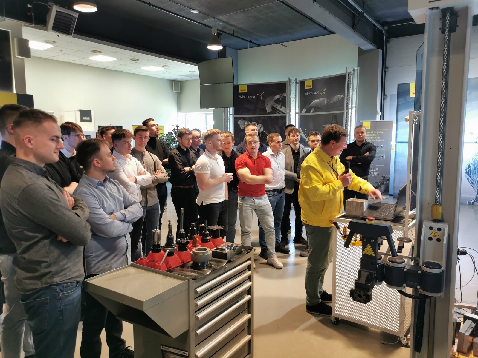 Program szkolenia obejmował zagadnienia m.in.: produkcji płytek PCD & CBN – pokaz procesu wytwarzania płytek skrawających dla obróbki materiałów zaawansowanych połączony ze zwiedzaniem fabryki, głowicy MS60 – nowatorski system narzędziowy do procesu frezowania, obróbki na twardo (HPT) – nowoczesne metody obróbki materiałów lotniczych – trudnoobrabialnych, Tool Guide – elektroniczny asystent doboru narzędzi skrawających oraz parametrów technologicznych, Silent Tools – nowe rozwiązania w zakresie narzędzi skrawających z tłumikami drgań.