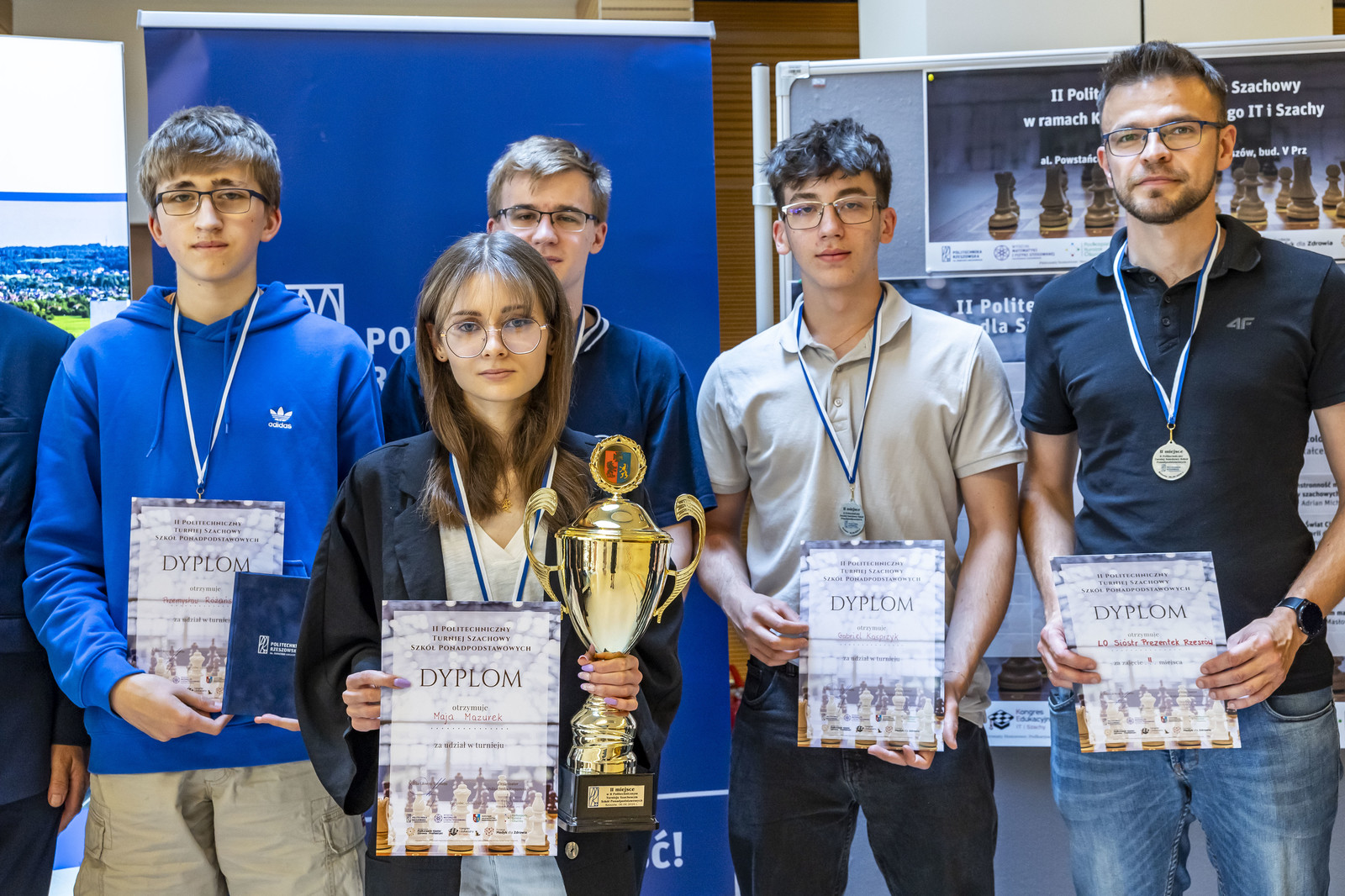- szachownica nr 3: Maja Bauer z II Liceum Ogólnokształcącego w Rzeszowie, Mateusz Różycki z Zespołu Szkół Licealnych w Leżajsku, Gabriel Kasprzyk z Liceum Ogólnokształcącego Sióstr Prezentek w Rzeszowie,