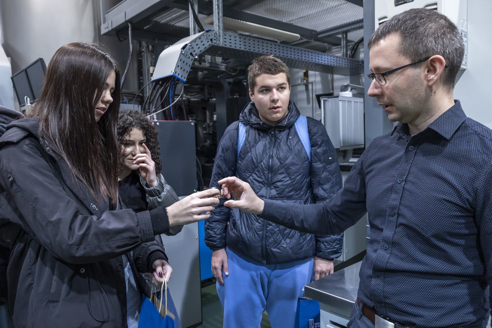 W drugiej części wydarzenia młodzież uczestniczyła w warsztatach i pokazach laboratoryjnych zorganizowanych w Katedrze Nauki o Materiałach na Wydziale Budowy Maszyn i Lotnictwa oraz Laboratorium Badań Materiałów dla Przemysłu Lotniczego. Uczestnicy mieli okazję zapoznać się z wybranymi technologiami i metodami badawczymi, takimi jak proces nawęglania, technologie laserowe, nowoczesne metody wytwarzania powłok (EB-PVD i PS-PVD), mikroskopia świetlna, a także działalnością studenckiego koła naukowego AMSA (Aerospace Materials Students’ Association).