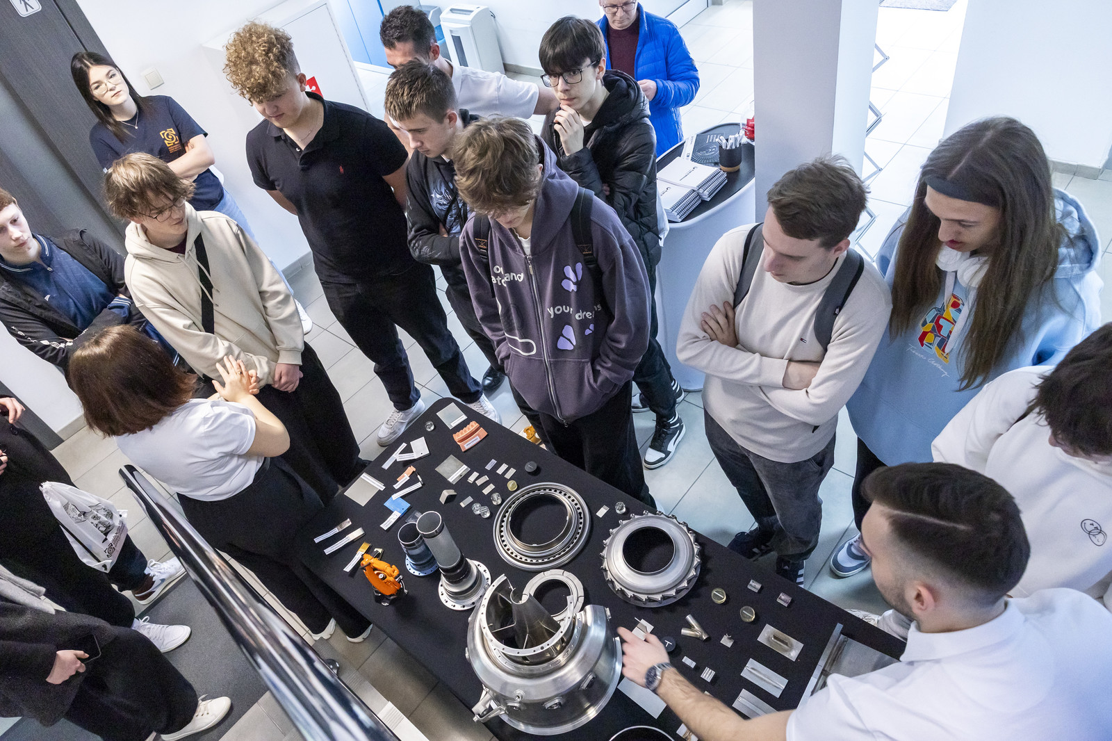 Po wykładzie młodzież udała się do Katedry Nauki o Materiałach i Laboratorium Badań Materiałów dla Przemysłu Lotniczego, gdzie wzięła udział w warsztatach nt. mikroskopii skaningowej elektronowej, natryskiwania plazmowego, fizycznego osadzania z fazy gazowej (EB-PVD), procesów elektrochemicznych oraz badań właściwości mechanicznych materiałów. Uczestnicy mogli również wysłuchać prezentacji dotyczącej działalności studenckiego koła naukowego AMSA (Aerospace Materials Students’ Association).