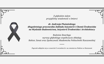 Z głębokim żalem przyjęliśmy wiadomość o śmierci długoletniego pracownika Zakładu Inżynierii i Chemii Środowiska na Wydziale Budownictwa, Inżynierii Środowiska i Architektury.