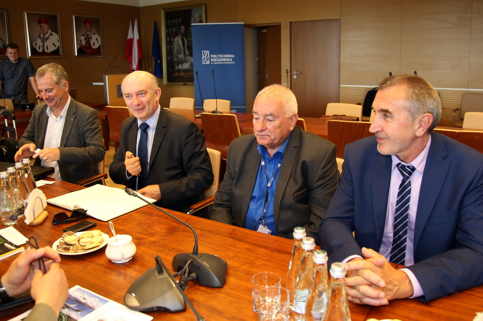11 lipca br. w Sali Senatu PRz odbyło się spotkanie władz uczelni z przedstawicielami firmy BOMBARDIER Aerospace. Dotyczyło przyszłej współpracy naukowo-badawczej w dziedzinie innowacyjnych technologii. Prof. dr hab. inż. Tadeusz Markowski, rektor PRz, prof. dr hab. inż. Grzegorz Budzik, prorektor ds. nauki, oraz dr hab. inż. Mariusz Oleksy, prof. PRz, prorektor ds. rozwoju i kontaktów z gospodarką, rozmawiali na temat współpracy z Michaelem Curranem, dyrektorem w Aerostructures and Engineering Services i Januszem Kućminem, generalnym przedstawicielem Bombardiera na Polskę. Możliwość kooperacji miałaby dotyczyć technologii stosowanej w lotnictwie, m.in. kompozytów, szybkiego prototypowania oraz symulacji konstrukcji lotniczych wspomaganych komputerowo.