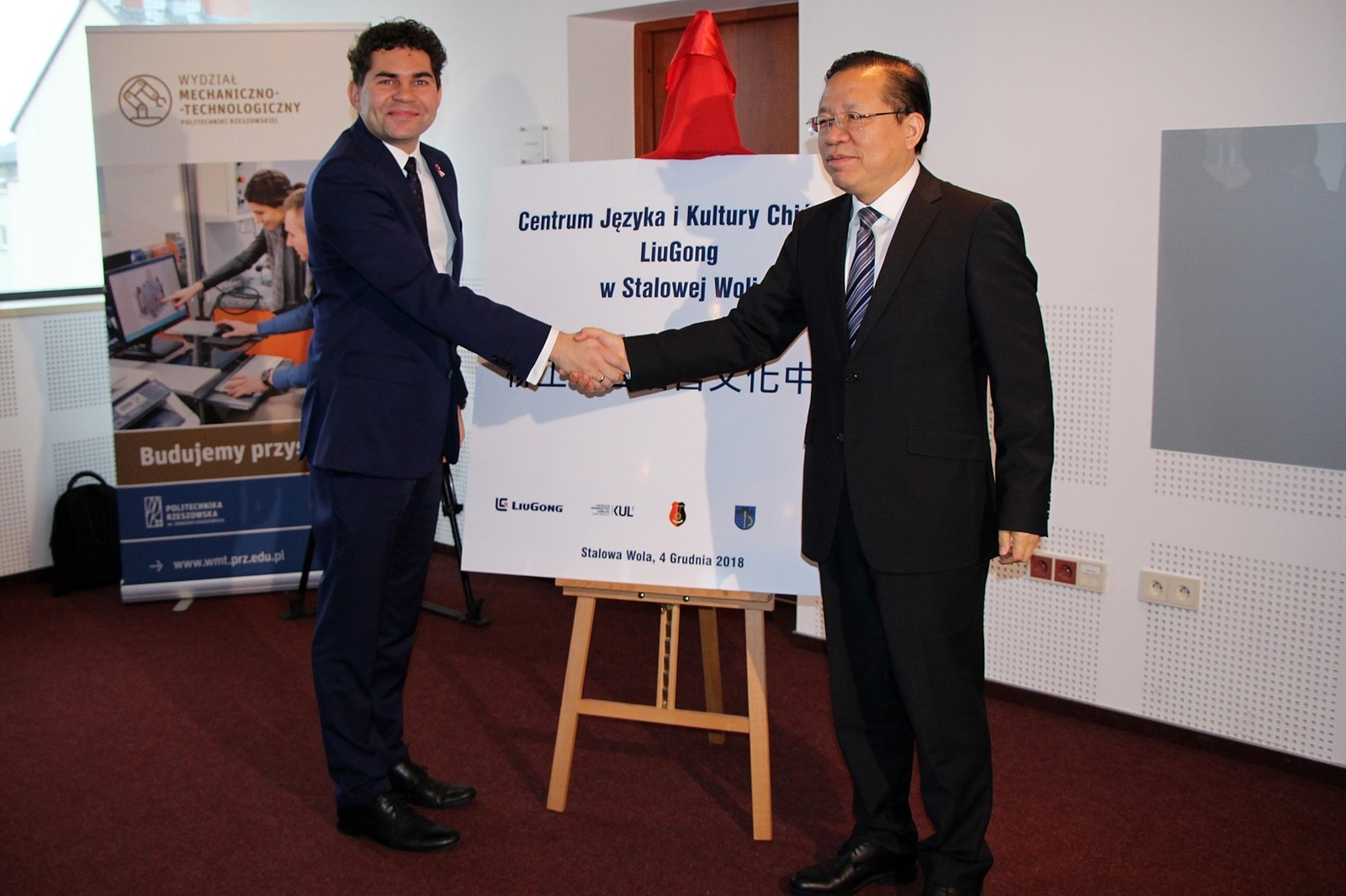Porozumienie o powstaniu Centrum Języka i Kultury Chińskiej „LiuGong” podpisał w imieniu Politechniki Rzeszowskiej dr hab. inż. Grzegorz Masłowski, prof. PRz, prorektor ds. kształcenia. Uczelnię reprezentował także dr hab. inż. Aleksander Mazurkow, prof. PRz, dziekan Wydziału Mechaniczno-Technologicznego PRz w Stalowej Woli. W uroczystości wzięli też udział Hou Yubo, wiceprezes LDM, prezydent Stalowej Woli Lucjusz Nadbereżny, starosta stalowowolski Janusz Zarzeczny i delegacja Regionu Autonomicznego Kuangsi-Czuang, na czele z wiceprzewodniczącym Qin Rupei, która w tym tygodniu przebywała z oficjalną wizytą w województwie podkarpackim.